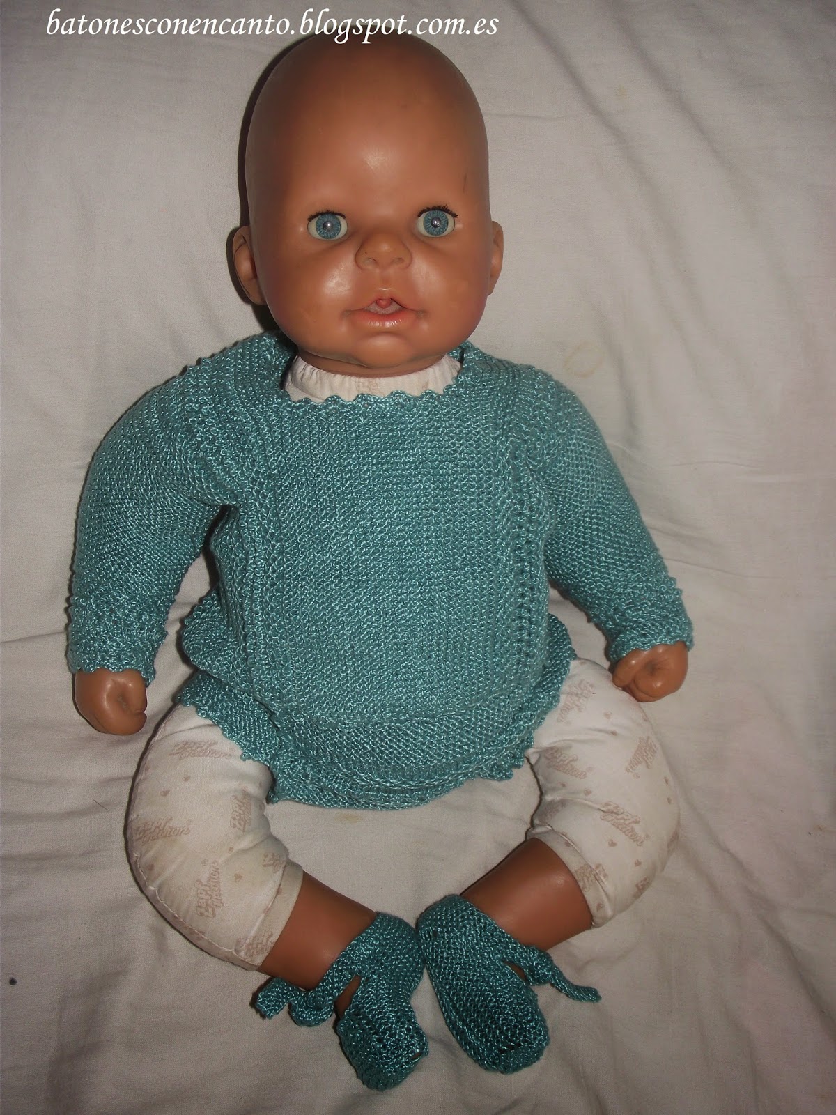Ahora ya si os voy a dejar mi primer conjunto, de bebé, que he tejido. Está hecho a punto bobo, punto de uña y punto de abeja.