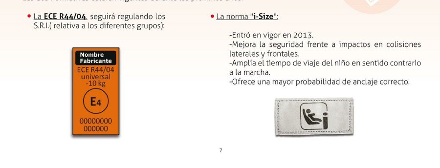 Los SRI deberán llevar una etiqueta de homologación que garantiza que cumplen los requisitos de seguridad establecidos por la normativa europea. Los dos normativas son ECER44/04 y la I-SIZE.