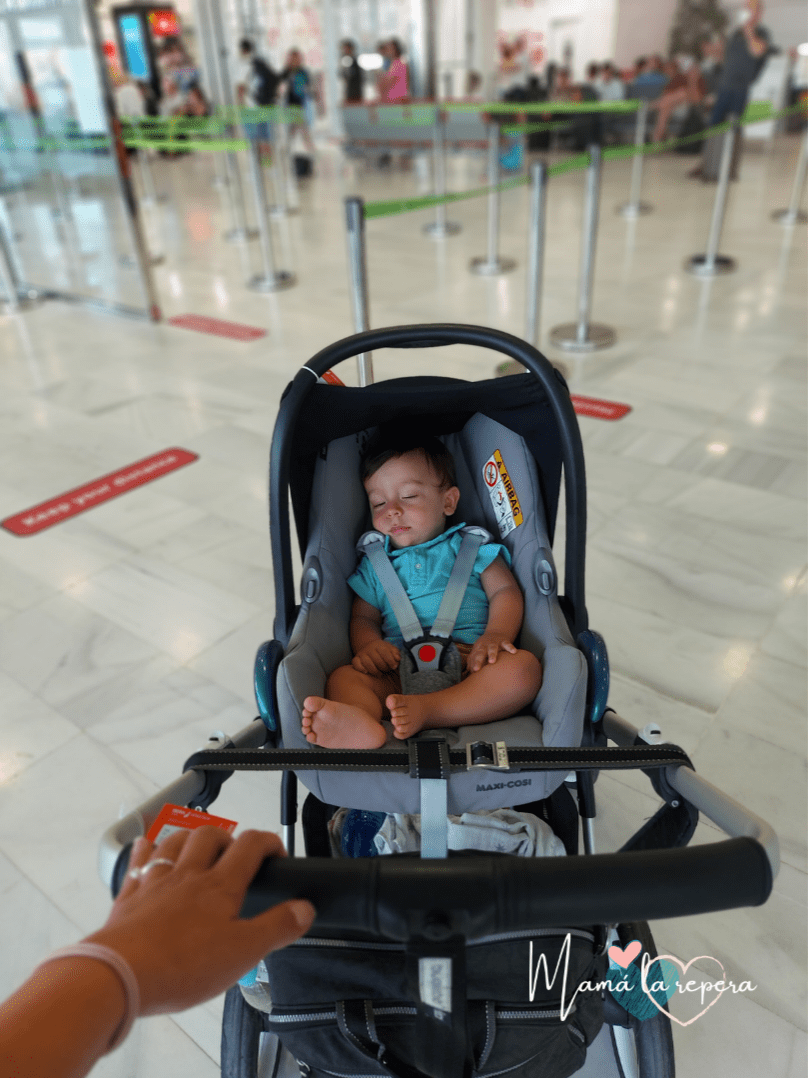 Está permitido viajar con una silla de paseo o un carrito de dos piezas. Nosotros finalmente decidimos llevar el chasis de bugaboo junto con el maxi-cosis.