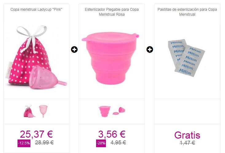 Todas vienen acompañadas de una bolsita de algodón, pero el esterilizador de silicona plegable me encantó, y las pastillas esterilizadoras me han ahorrado tener que hervirla, y ya he pedido más. Hay muchos modelos a elegir, y tenéis mogollón de productos femeninos muy interesantes.