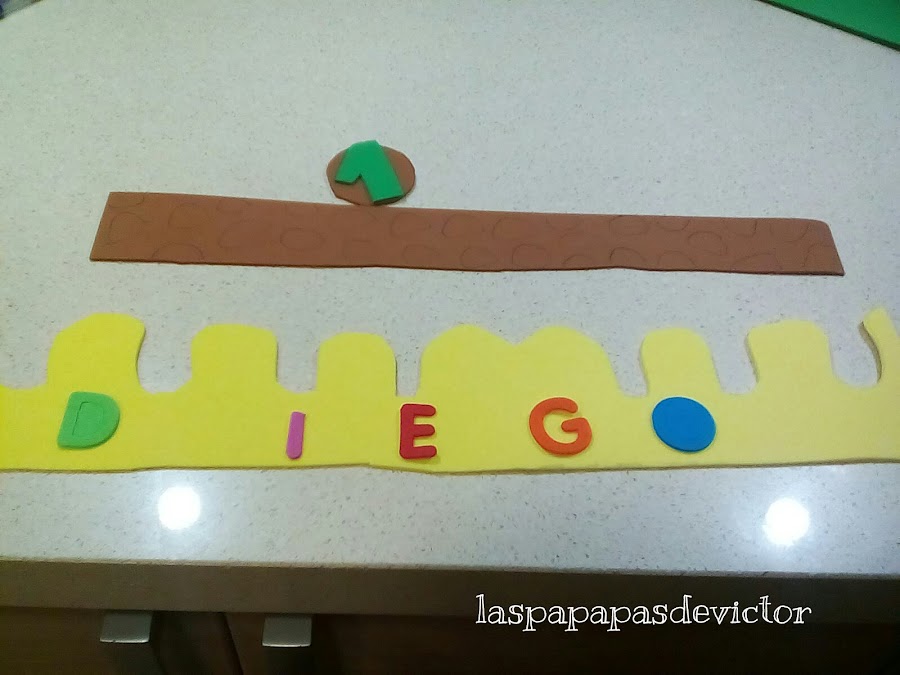 Yo hice una redonda de goma Eva y le recorte y pegue con cinta adhesiva el número de su cumple