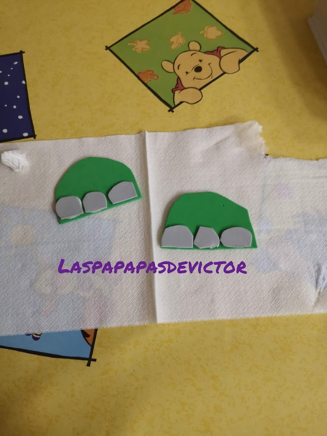 Primero hice el patrón de las patas y mi grande los recorto y los pego con silicona líquida