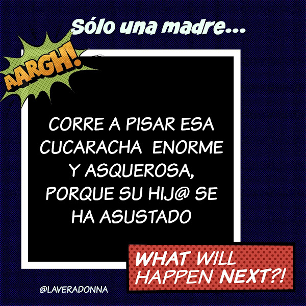 Cualquier madre valiente dirá, que tontería, pero lo he admitido, no les tengo miedo, pero si un asco profundo, y es aún peor el sonido que hacen cuando las pisas. Pero, todo sea por mis niños, si su madre no se empodera y sale en su defensa, ¿quién?...Ya mas adelante le enseñaré que es un bicho y ellos valientemente las eliminarán por ellos y por mi, eso espero, porque tengo aun muy fresco el recuerdo de mi padre subiéndose a las sillas cuando las cucarachas entraban a casa o mi hermano evadiendolas incapaz de pisarlas y era mi madre la valiente que salia a matarlas, incluso yo para no tener que ver el espectáculo de mi padre, o permitir que mi hermano las dejara escapar, ¡ja!, el sexo fuerte, si claro.
