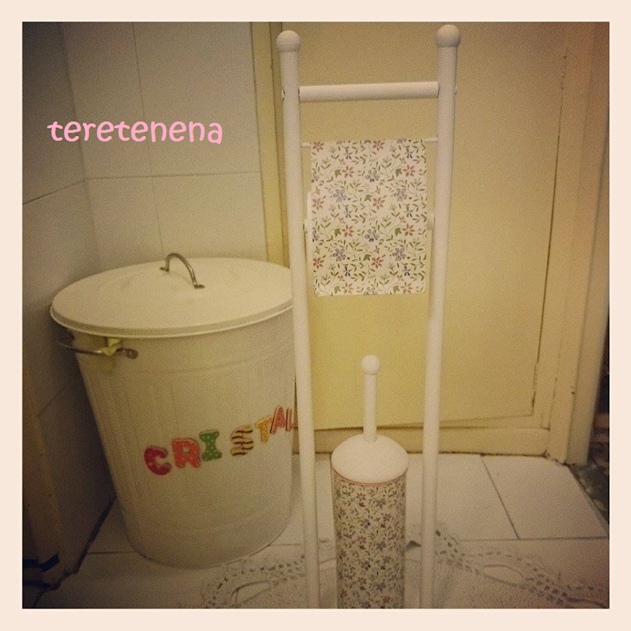 El set de papel para WC del baño de mi nena estaba muy desgastado y viejete. Lo pinté con Cahlk Paint Fleur Chalk White y el recipiente para la escobilla y la tapa que cubre el papel los forré con papel adhesivo de flores. Después barnicé lo pintado con barniz para Chalk Paint Auténtico.