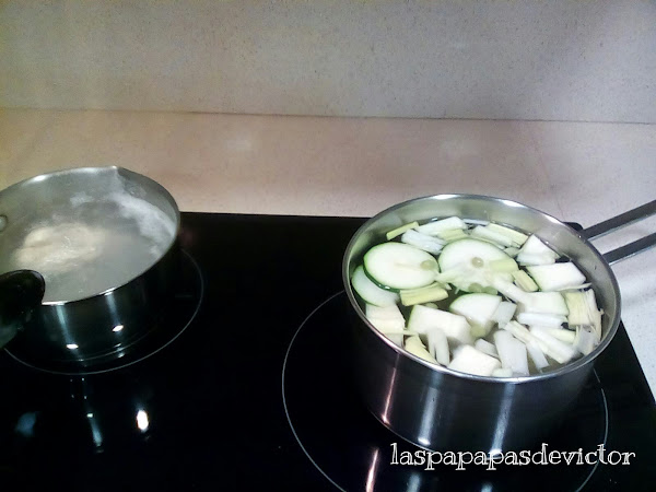 Poner a hervir por un lado para quitarle la grasita, el pollo y en otra ollita las verduras