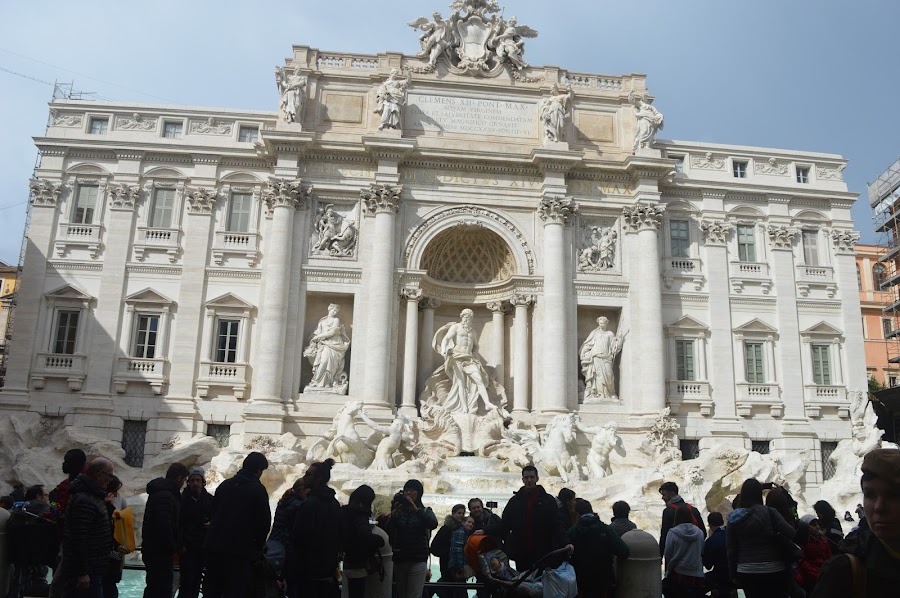 Desde Piazza Venezia, seguimos por la Vía del Corso hasta la Vía delle Muratte y llegamos a la Fontana Di Trevi. Dice la tradición que hay que situarse de espaldas a la Fontana y tirar una moneda por encima del hombro y así aseguramos volver a Roma en otra ocasión.