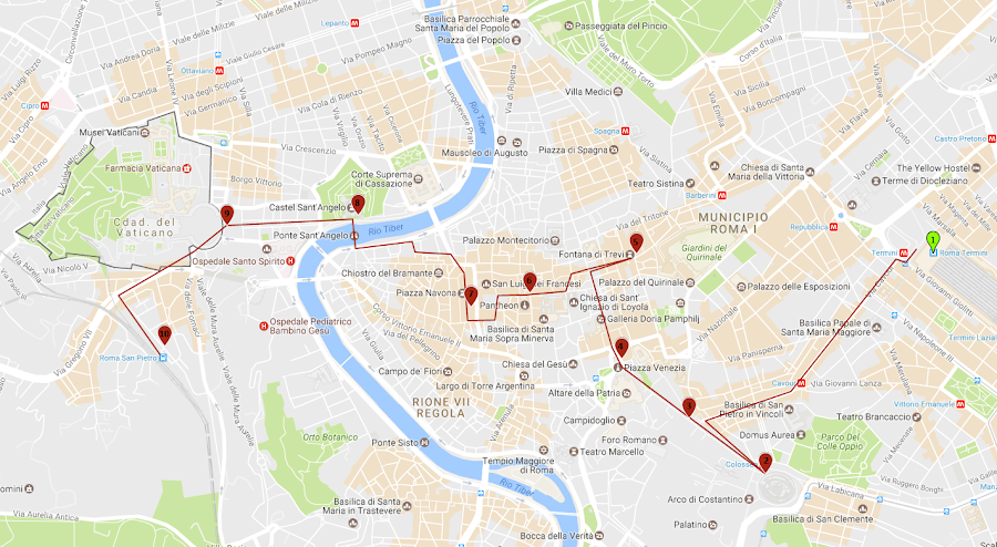 Ruta que seguimos por Roma