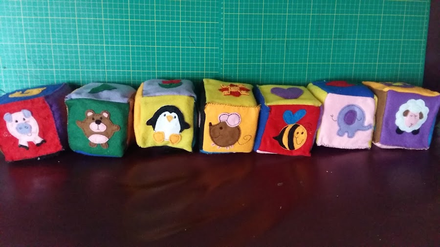 Bueno, si se animan a hacer estos cubitos, les voy a ser sincera, tienen que tener mucha paciencia. Si notan las entradas anteriores, verán que ha pasado mucho tiempo desde que empecé este proyecto; y es más, lo logré terminar gracias a la ayuda de mi hermano, quien se compró una máquina de coser y en unos minutos unió los lados de todos los cubos. No miento que las puntadas hechas a mano quedan más bonitas, pero tuve que auxiliarme de la máquina de coser para poder acabarlos. Pero eso sí, los dibujitos que lleva cada cubo sí que tienen que hacerlo a mano. No recomiendo que usen pega porque los niños son bien traviesos y pueden despegarlos.