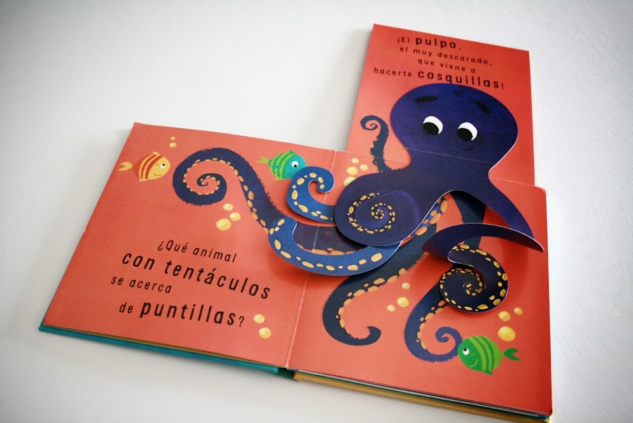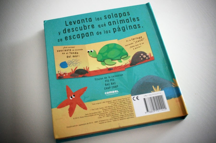 Chap Chap diversión Pop-up, maneja unas frases muy cortas, con alegres rimas, basadas en los animales que se esconden bajo el mar. Me parece un cuento perfecto para acercar a los más pequeños al mundo marino, y veréis que de esta manera, pronto aprenderán a identificar todos los animales incluidos en el libro y se divertirán mucho experimentando la sensación de abrir cada solapa Pop-up.