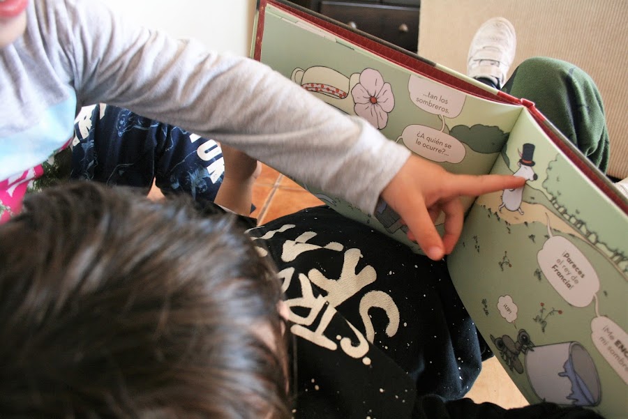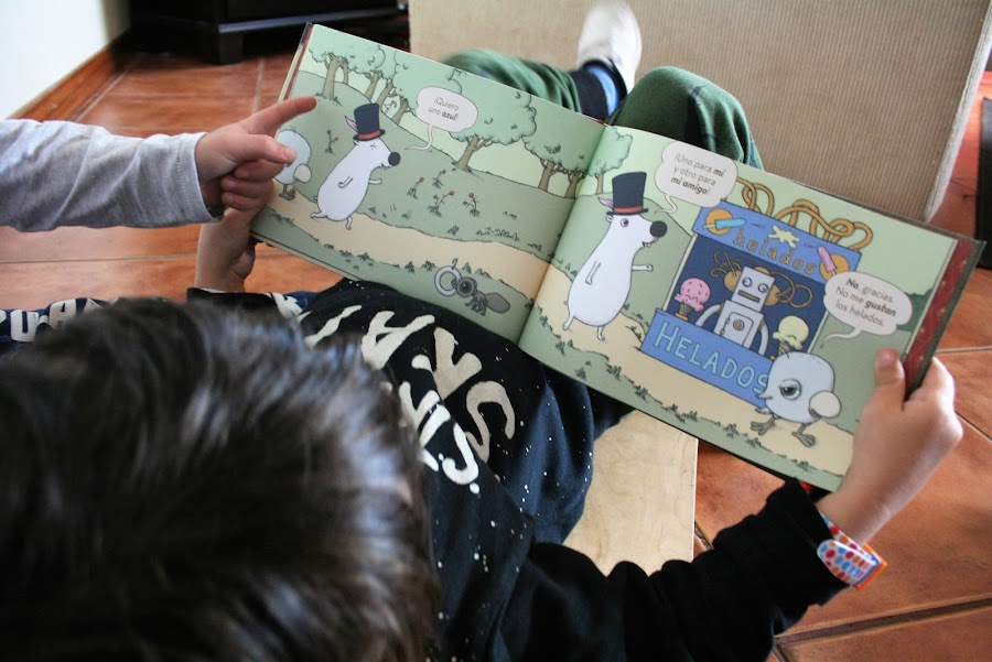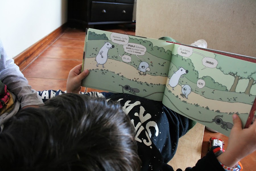 Un Cuento con un texto simple, en forma de bocadillos que acompañan unas expresivas ilustraciones que mis hijos nos paraban de señalar, desde luego no hace falta saber leer para entender esta historia.
