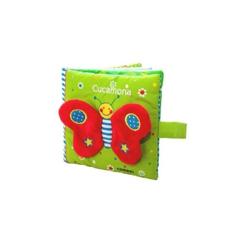 Cucamona es un precioso libro de tela de la editoral Combel con colores vivos, sonidos y muchas texturas variadas para tocar, agarrar, estirar y retorcer. También tiene un pequeño espejo al final para estimular los sentidos del bebé y que empiece a reconocerse.