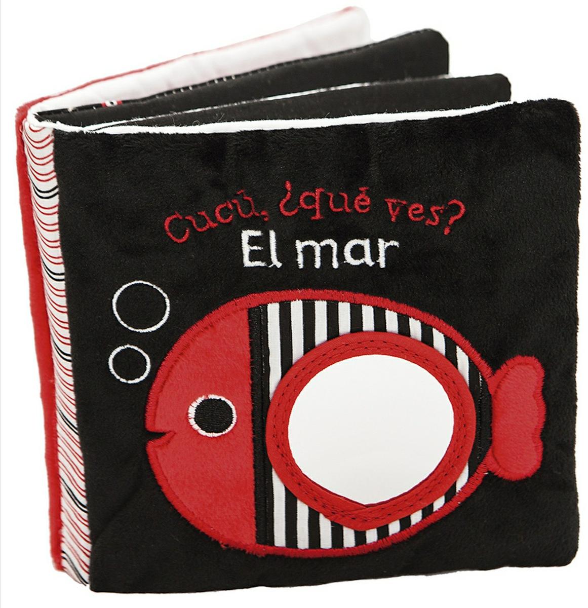 Aquí tenemos otro libro de tela para bebés pero en este caso,en color rojo,blanco y negro que llamará la atención de los más chiquitines.Tiene un espejo en la portada y diferentes hojas y texturas perfectas para el disfrute sensorial de los bebés.