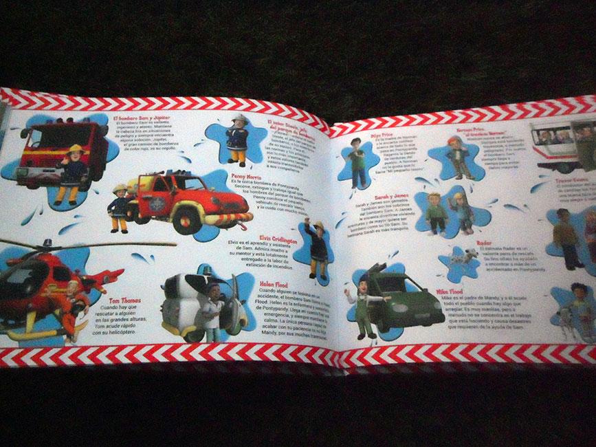En el caso de los cuentos individuales, ambos presentan al final del mismo un detalle de todos los personajes que forman parte de las historias de Sam el Bombero, incluido el nombre de los vehículos (que es una de las cosas que al principio nos lió un poco, jejejeje).