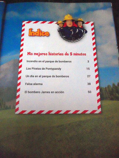 Este es el título del recopilatorio de historias de Sam el Bombero. Es un libro más alto y con más imágenes y contenido por hojas. En él se incluyen los otros dos cuentos sueltos que os comentamos aquí. El índice de los cuentos es este:
