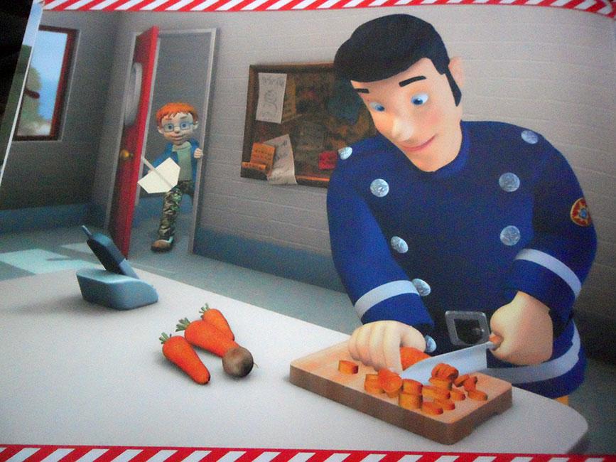 En este caso se trata de una aventura del personaje Norman, el niño pelirrojo que se ve en la imagen, que no encuentra donde jugar con sus aviones de papel y todo el mundo le dice que se vaya de donde está porque molesta. Acude al parque de bomberos, donde otro de los bomberos Elvis está cocinando. Norman lanza un avión de papel en la cocina, justo antes de que Elvis le vea y éste después le dice que allí no debe estar. El problema viene cuando al seguir cocinando, Elvis enciende los fogones y se va a recibir al resto de bomberos del equipo que han salido a una inspección contra incendios. El avión de papel prende en el fuego de los fogones y se produce un incendio en la cocina del parque de bomberos. Pero Sam consigue extinguirlo enseguida y solucionar así el problema.
