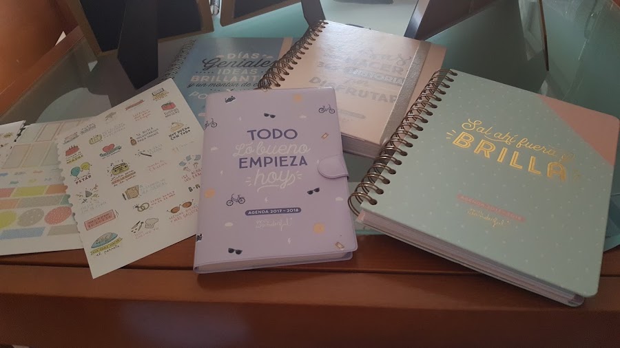 Aquí os presento, en primer lugar, mis agendas de Mr. Wonderful: En la foto inferior, las dos de arriba son las que están a punto de terminar y las de abajo, las nuevas de este año. En el primer caso, la rosa ha venido siendo mi agenda de organización del hogar, tareas domésticas, menús semanales, etc. Era la día vista, muy espaciosa para realizar listas. Este año he decidido que no la voy a adquirir puesto que viene bastante más gruesa y ya con esta he tenido algún problema con la encuadernación (Algunas anillas se han salido de su sitio).