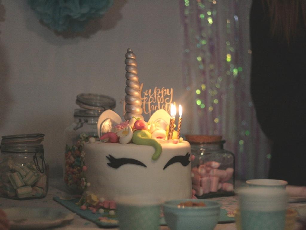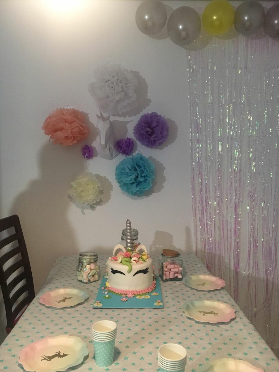 La temática de este cumple han sido los unicornios, imagino por esto de que hay unicornios por todos lados, pero el caso es que habían visto varias tartas de unicornio y les llamaba la atención, y así fue.