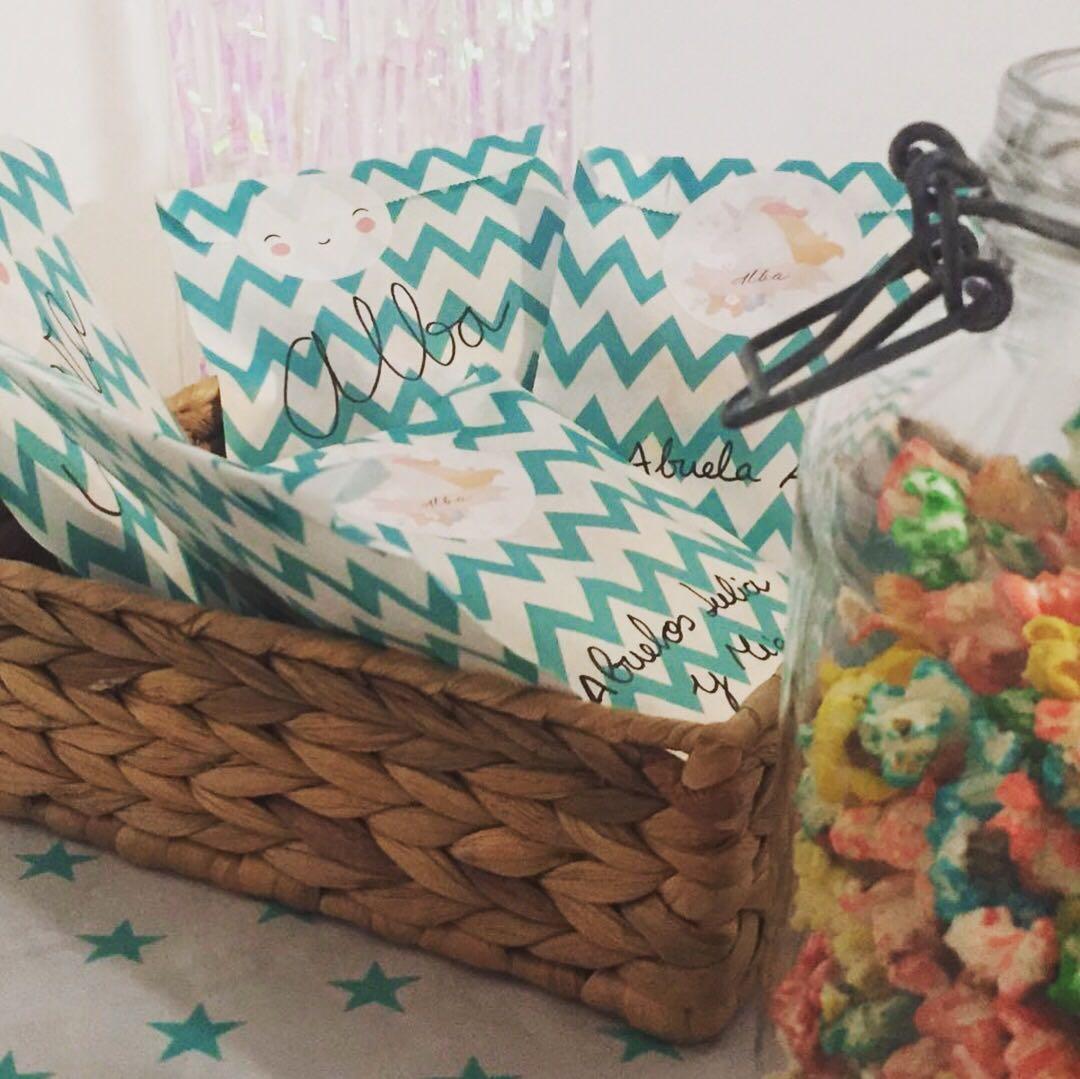 Los platos que fueron un flechazo a primera vista también son de la fiesta de Olivia, al igual que los sobrecitos para las galletas que dimos como detalle de cumple y las pegatinas personalizadas en las que pusimos el nombre de Alba, para cerrar los sobrecitos. ¿qué os parecen?