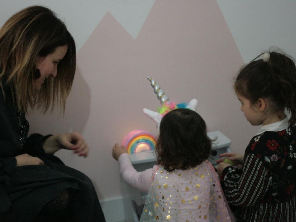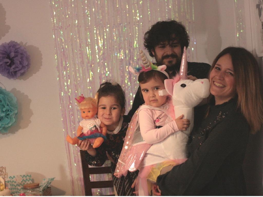Como veis, la cumpleañera se disfrazó casi al principio de la fiesta con el disfraz que le trajo la abuela Loli, y como veis es super gracioso y lo podeis encontrar en H&M. La diadema de unicornio y el unicornio peluche, en el que se puede meter, porque se sujeta con unos tirantes lo podeis encontrar en amazon.