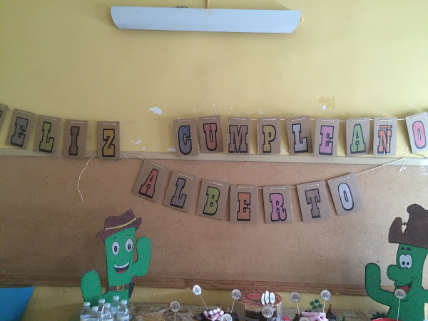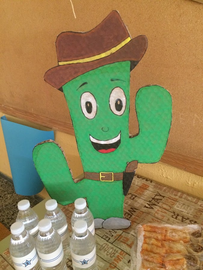 Para la decoración de la mesa hicimos unos cactus de cartón muy divertidos, y una guirnalda con cartón.
