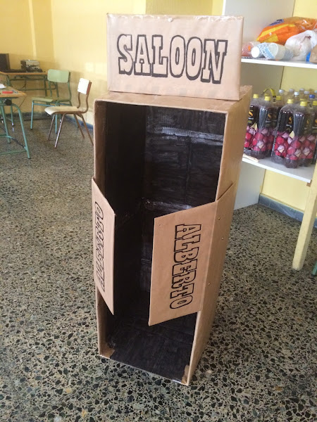 La piñata era muy, pero que muy casera,con cartones hicimos la forma de una bota, y aunque como siempre en mi cabeza quedaba mejor, hizo su función perfectamente.
