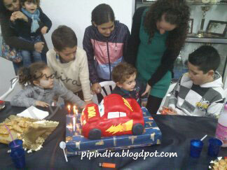 Rebuscando entre las fotos antiguas he encontrado las segundo cumpleaños de Noah. El decorado y el menú se lo hice yo. Los coches están hechos con polispan y encima les pegué cartulina de colores. Son muy fáciles de hacer. La tarta era con fondant. Me llevé toda la noche haciéndola, uff ¡que trabajito me costó! Y es que el fondant y yo en aquella época nos estábamos conociendo y aún no le tenia el truco cogido. Eso y el hacer los bizcocho, recortarlos, que parecía que estaba esculpiendo un monumento. ¡La que lié en la cocina!
