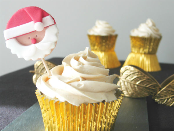 Con una manga pastelera, ponemos la crema a los cupcakes y decoramos. Si te apetece hacer el Papá Noél de fondant, sigue este tutorial paso a paso. Es muy fácil!!