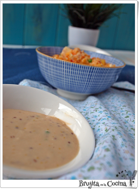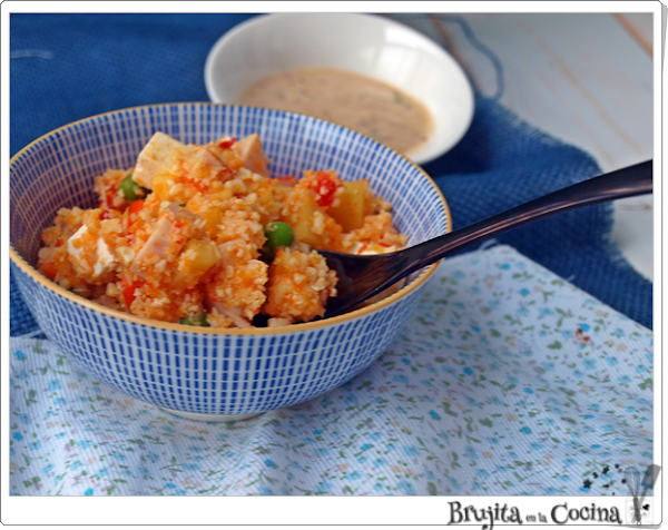 Ya preparé un falso cus cus que nos gustó mucho aunque para Samu tenía muchas cosas que no le gustan, por eso la propuesta de hoy con ingredientes que a los peques les gusta más, y con el pimiento bien picado para que no sé note, porque yo no se que pasa con el pimiento, que un minúsculo y milimétrico cacho molesta una barbaridad pero se puede comer una bola de chuche enorme que eso no hace bola ni pasa nada.