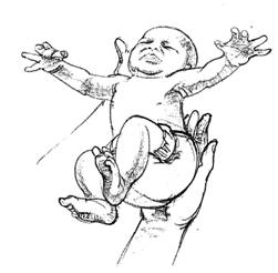 El bebé levanta sus brazos y piernas más cerca de su cuerpo en un movimiento que se asemeja a la posición fetal bien conocida.