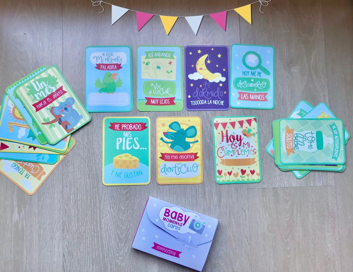 Yo he optado por este pack, compuesto por tarjetas BabyMoments y la muselina.