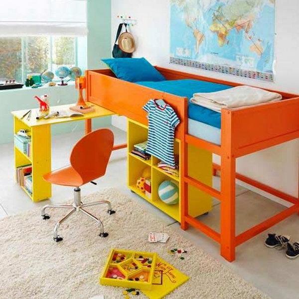Cuando tenemos un herman@ que aún duerme en cuna y queremos pasar al cuarto para que duerman juntos, pues también es posible, cama en posición alta y cuna debajo.