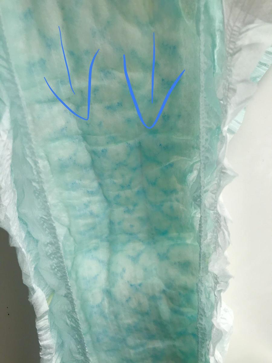Aquí podéis ver la diferencia entre los nuevos pañales Dodot bebé seco, y un pañal de los antiguos. Como se aprecian perfectamente los canales de aire.