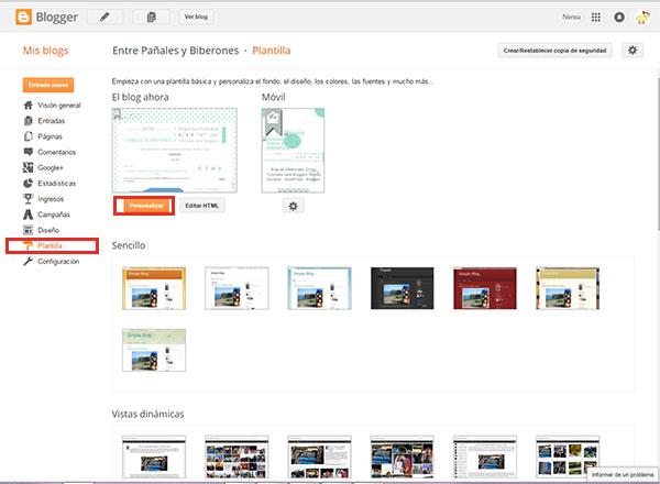 A continuación paso a indicarte dónde tienes que pegar dicho código; para ello, primeramente debes clicar en «Plantilla».