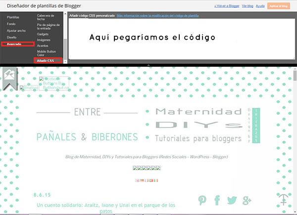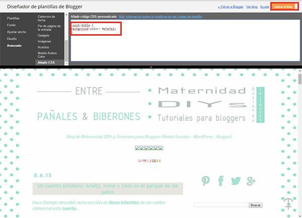 En último lugar pegaríamos el código elegido en la zona blanca situada en la esquina superior y clicaríamos en «Aplicar al blog».