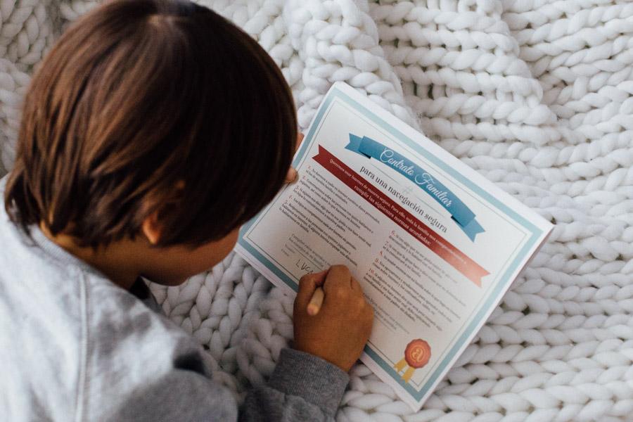 Por último incluye un contrato familiar para una navegación segura que voy a leer y firmar con Lucas.