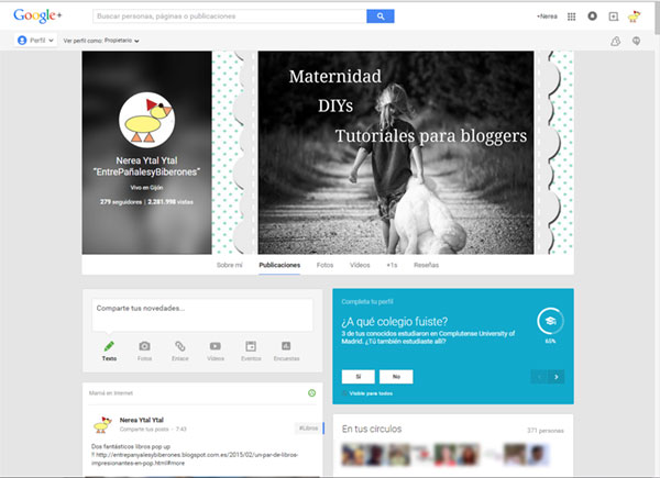 Clicaremos sobre el icono y accederemos así a nuestra cuenta de Google+.
