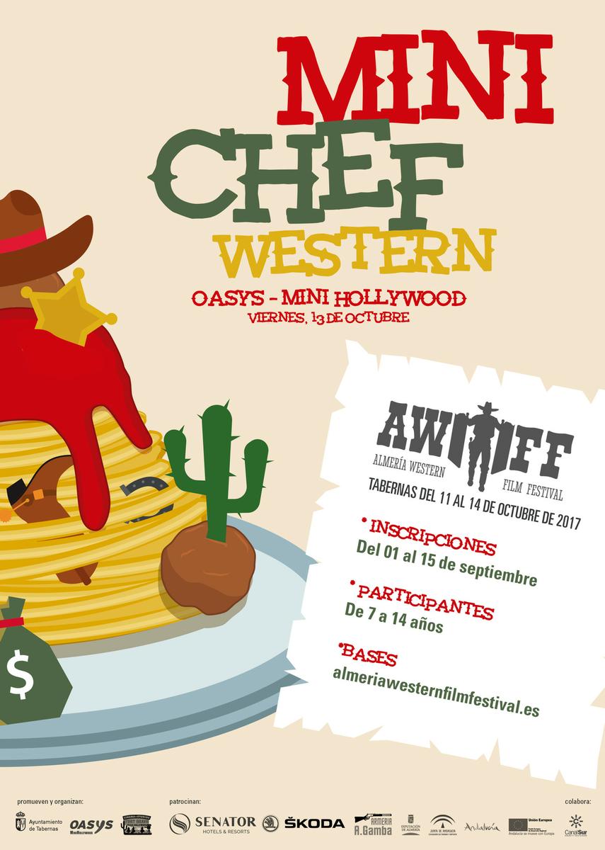 AWFF ha convocado el I Concurso Mini Chef Western para niños cuyas edades estén comprendidas entre los 7 y los 14 años. Sus habilidades las demostrarán el próximo viernes 13 de octubre en el parque Oasys MiniHollywood. ¡Los tres primeros clasificados ganarán una noche en Hotel Playadulce!.