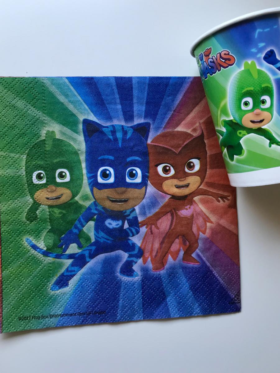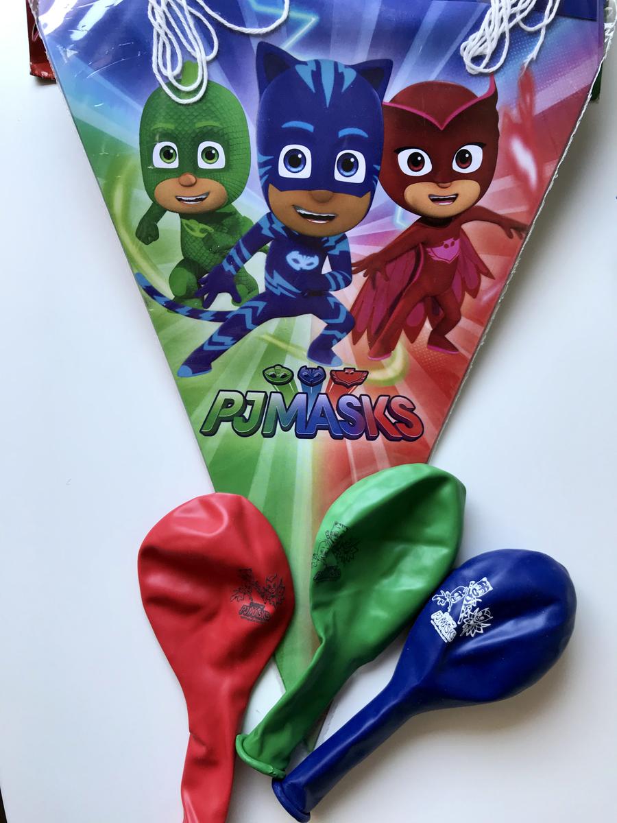 No os lo vais a creer, pero mi princeso ha descubierto hace muy poquitos dias a PJ Masks ve muy poca tele, y la que ve justo no daban estos dibujos, yo creo que por eso lo ha cogido con más ganas, y puesto que el tema está claro, solo he tenido que buscar, y aquí es donde he encontrado todo lo que necesitaba FiestasMix