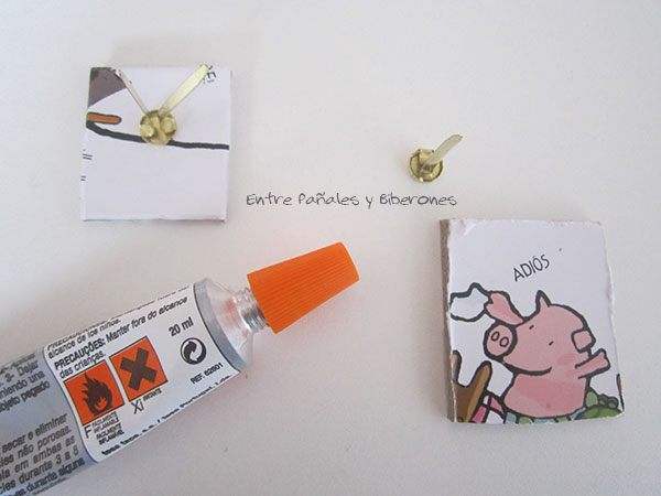 Después pegué por la parte de atrás de cada uno de ellos un encuadernador, para darle la movilidad a nuestros protagonistas.