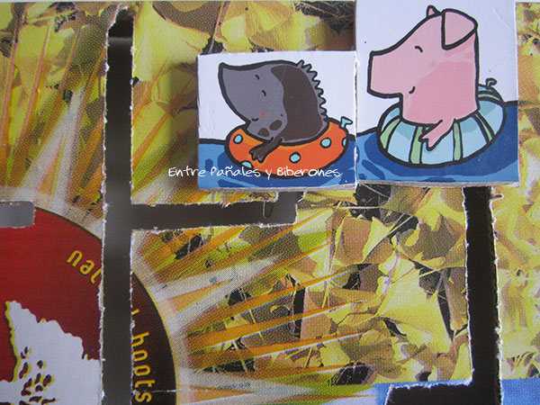 Y ya, en último lugar, introduje a nuestros protagonistas en el laberinto ( yo he puesto dos con la idea de que pueda participar más de un niño a la vez -o en mi caso, nuestra nena y yo-, la idea es que cada una mueva un personaje y terminemos encontrándonos en algún punto del laberinto, que nuestro cerdito y erizo son amigos y quieren encontrarse ! )