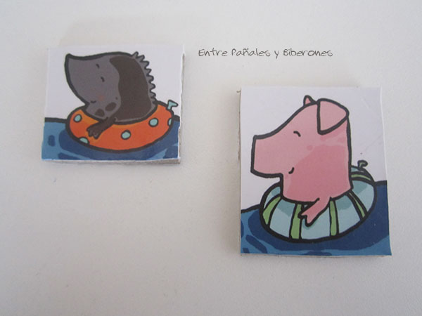 Lo primero que yo hice fue elegir a los protagonistas de mi laberinto de entre los que venían en la tapa del cuento, recortándolos con la ayuda del cutter.
