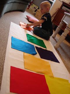 Tela, puedes usar incluso una sábana vieja… de colores, blanca… las medidas depende de tí, y de tu espacio a la hora de expandirla.