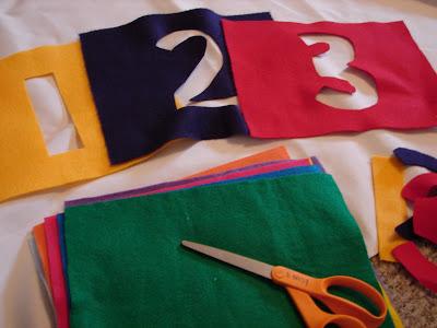 Seguidamente, dibuja los números en las hojas de fieltro y recorta, cuida de hacerlos en el centro, puedes usar una plantilla ti tienes…