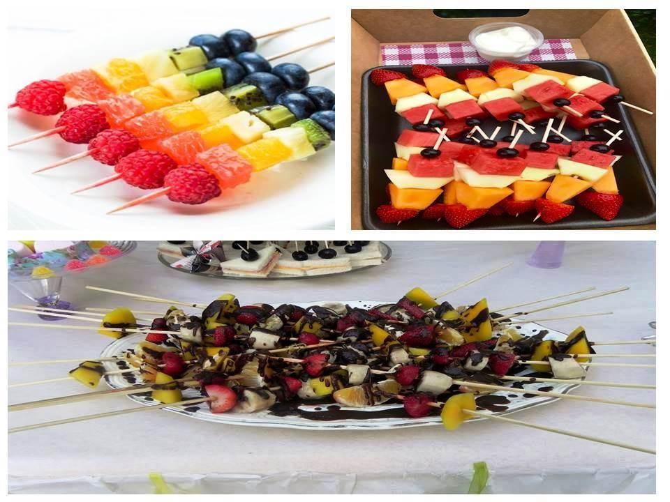 Necesitas los palitos y ensartas las frutas haciendo una combinación de colores y sabores.