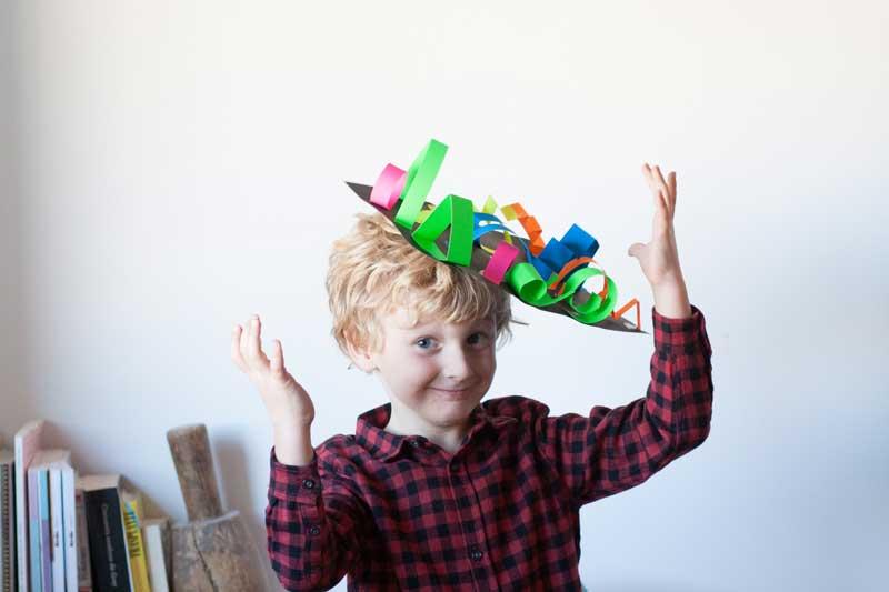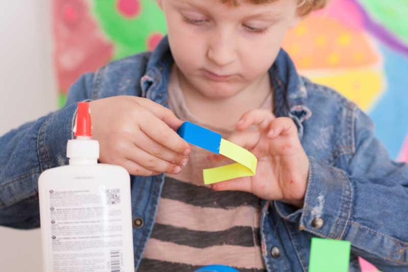 En este punto los niños y niñas se darán cuenta que pueden hacer multitud de formas con las tiras de colores, bien uniéndolas entre sí, doblándolas en forma de espiral, de círculo, de cuadrado, etc, Marc incluso hizo un caracol!