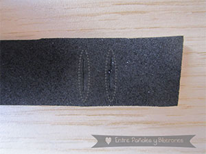 2. Hacemos dos cortes verticales, que serán parte del "cierre" de la pulsera