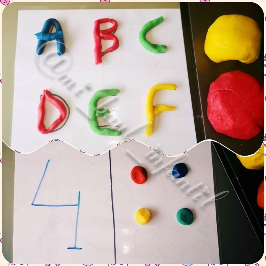 La plastilina es un material que se presta a muchas actividades, normalmente dejamos a los peques en juego libre con ella. Pero también podemos utilizarla para trabajar diferentes aspectos.Os animo a que hagáis unas plantillas como las siguientes con formas geométricas, otras donde deban seguir un camino (línea) y otras, con números y letras.