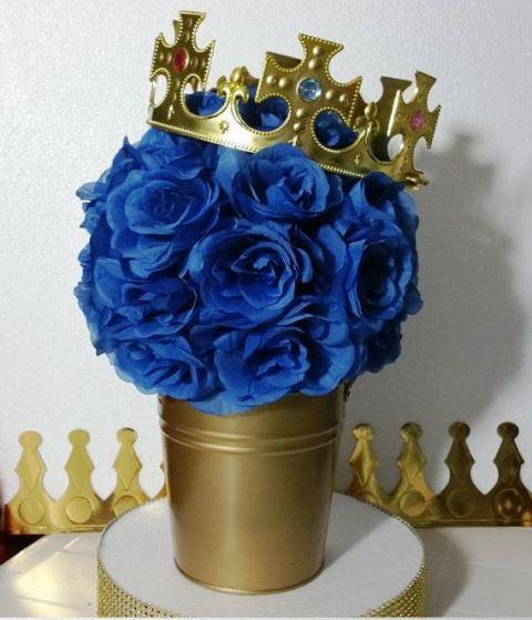 Furuix Royal Prince Baby Shower Decorations Navy Cream Gold Bridal Shower Decorations Tissue Pom Pom Flower Navy Honeycomb Balls for 1st Birthday Boy Prince Party Supplies Birthday Party Decorations