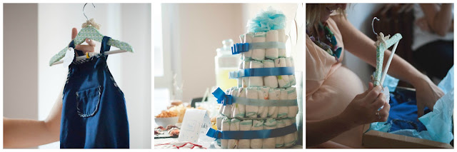 Y regalitos varios como la tarta de pañales que se ve en la foto (muy fácil de hacer), un traje para fiestas (está previsto que nazca en las fiestas de nuestro pueblo), una mini percha by Oli&Moli y una foto de la sesión de embarazo que les hice, canjeable al final de este mes por otro regalo ¿que será?