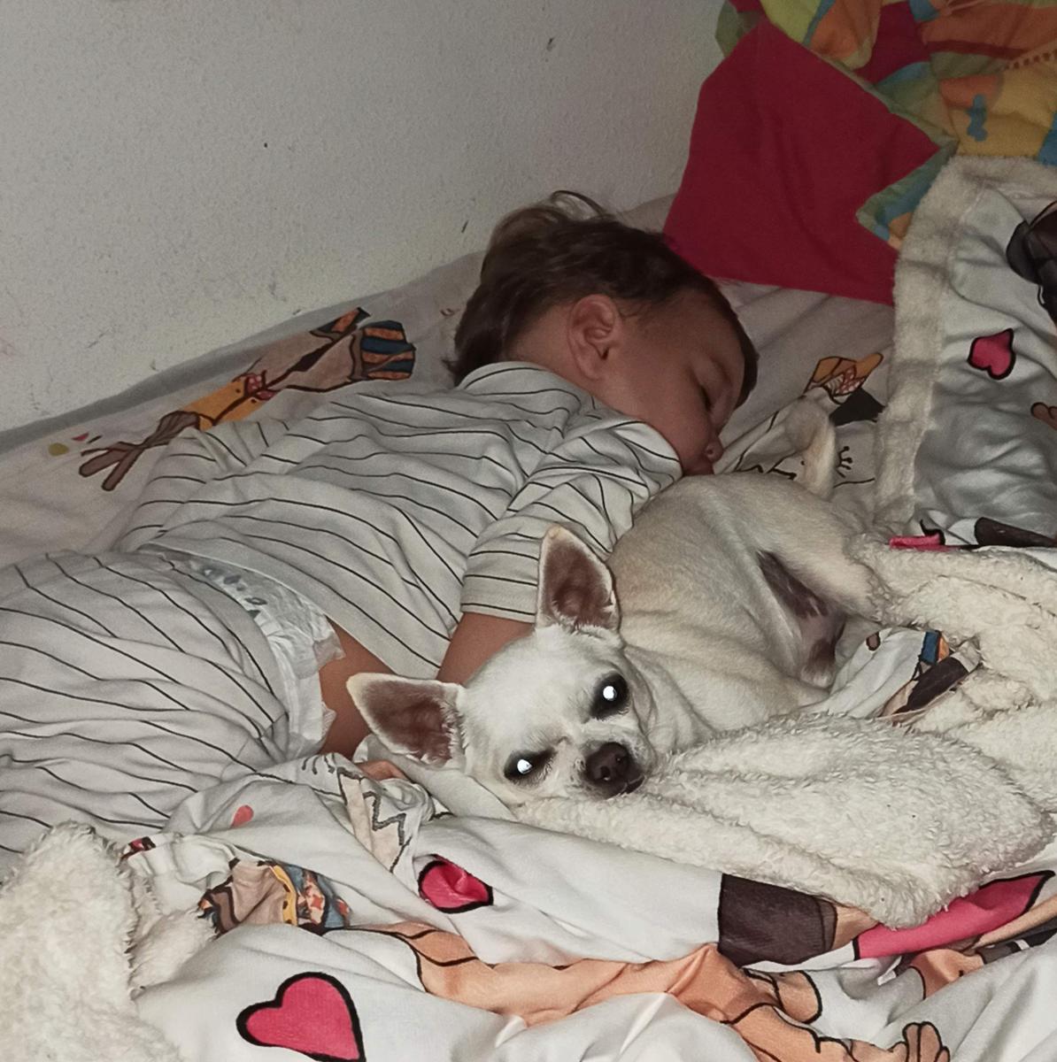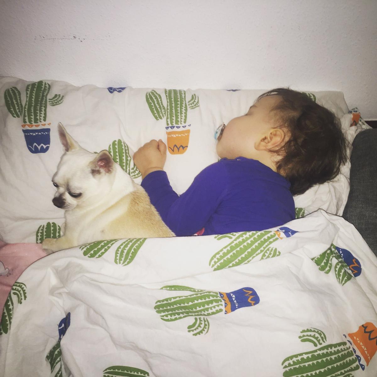 Si has leído otros post de este blog seguramente ya te resulte familiar uno de nuestros perros, Fujur, que se autoproclamó compañero inseparable del bebé y con el que comparte cama cada noche, tan felices los dos.